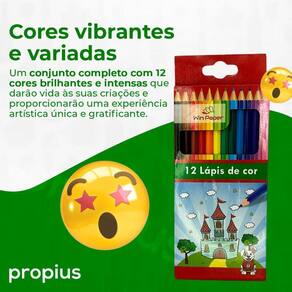 - Variedade de cores: Nossos lápis de cor oferecem uma seleção magnífica de 12 cores vivas e intensas, permitindo que você adicione profundidade e dimensão às suas criações, sem limitar sua imaginação.