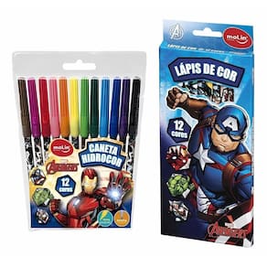Conjunto Escolar Lapis De Cor 12 Cores + Canetinha Hidrocolor 12 Cores Avengers