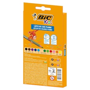 Os lápis divertidos! O Lápis de Cor BIC da linha BIC Kids Pijama vem no estojo com corpo listrado que traz um visual diferenciado e divertido. Possui ponta resistente, além de ser seguro para as crianças porque não lasca, devido ao seu exclusivo processo de fabricação que não usa madeira e sim uma resina sintética. Seu corpo sextavado não deixa que o lápis role pela mesa. Disponível em 12 cores diversas, o conjunto oferece mais 2 Lápis de Escrever. Um produto super seguro para os pequeninos enquanto se divertem com a qualidade BIC!
