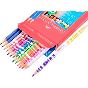 Lápis de Cor 12 Lápis/24 Cores Bicolor 2 Lápis 1 Apontador 1 Borracha Faber Castel