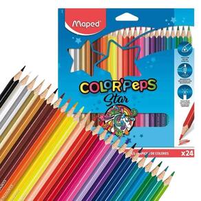 Lápis De Cor 24 Cores Triangular Color Peps Star Maped Lápis De Cor 24 Cores Color Peps Star MAPED - O Lápis de Cor 24 Cores Color Peps Star MAPED é perfeito para estimular a criatividade em sala de aula ou em casa. Seu formato triangular ergonômico facilita a pegada, proporcionando conforto e firmeza ao desenhar e colorir.