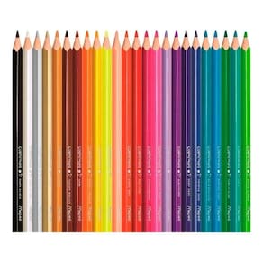 As cores são vivas, intensas e duráveis, com mina macia que desliza no papel e não quebra facilmente. O kit vem com 24 tonalidades , ideais para trabalhos escolares, artísticos e atividades de lazer.