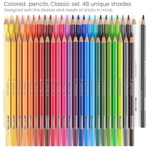 O conjunto de 48 lápis de cor Arteza proporciona cores intensas, perfeitas para livros de colorir para adultos, esboços e designs multimídia. Adequados para iniciantes e profissionais. Desfrute de uma experiência de colorir suave com esses lápis de cor para adultos, conhecidos por suas excepcionais capacidades de mistura, sobreposição e mistura de cores. Feitos para durar, esses lápis de cor para adultos têm núcleos robustos e resistentes a quebras. Com uma ampla variedade de cores, garantem diversidade criativa, tornando cada projeto uma aventura. Produzidos de forma ecológica, feitos de madeira, não tóxicos e podem ser facilmente apontados e utilizados até o final.