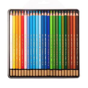 O Conjunto de 24 lápis de cor aquarela da linha Paisagem Koh-I-Noor é uma opção completa e de alta qualidade. Apresentados em uma caixa de lata, os lápis possuem formato hexagonal e um núcleo pigmentado de 3,8 mm. Com um acabamento premium, a parte superior dos lápis é marcada em dourado, exibindo um visual sofisticado.