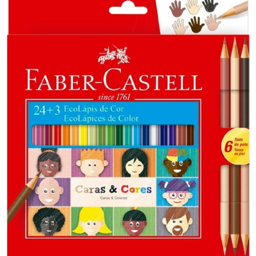 Detalhes do produto Os Ecolápis Faber-Castell da linha Caras & Cores foram desenvolvidas para celebrar a diversidade e estimular a criatividade das crianças com a formulação exclusiva de 6 tons de pele Cores mais vivas e ótima cobertura, são 6 tons de pele diferentes e misturáveis, que estimulam a criatividade e a autoexpressão através de novas combinações Produzido com madeira 100% reflorestada e certificada pelo FSC: respeito ao meio ambiente ATENÇÃO! Não recomendável para crianças de até 3 (três) anos, por conter parte(s) pequena(s) que pode(m) ser engolida(s) ou aspirada(s) Produto atóxico e não perecível Este produto pode ser reciclado Vamos limpar o planeta juntos Acesse: www.terracycle.com.br