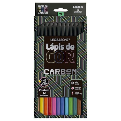 - 1 Caixa com Lápis de Cor Carbon Line 12 Cores Redondo LEO&LEO