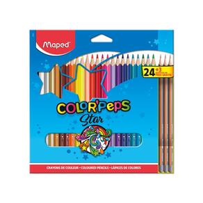 Contém: 24 lápis de cor e 3 lápis de escrita
