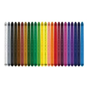Lápis triangular para uma melhor aderência. Design autêntico e patenteado que permite às crianças colorir em ambos os lados. Dê ao seu filho uma caixa de 24 lápis que duram muuuito mais!