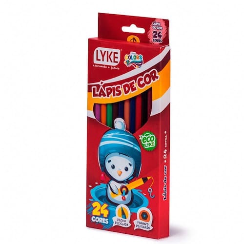 O lápis de cor lyke com 24 cores é fabricado em resina reciclada, contém corpo confortável e pontas resistentes que não quebram facilmente. É ideal para ser em projetos artísticos e por estudantes de várias idades. Embalagem: caixa com 24 cores. Composição: lápis de resina reciclada, mina de cera e pigmentos. Atenção: imagem meramente ilustrativa. Pode ocorrer mudanças no tom da cor para o produto real ou mudanças na embalagem sem aviso prévio por parte do fornecedor/fabricante. - atenção não recomendável para crianças menores de 3 três anos por conter parte s pequena s que pode m ser engolida s ou aspirada s e ponta s aguda s funcional is . Marca: Não Informado