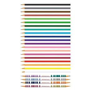- Possui 20 lápis com formato sextavado e 4 redondo
