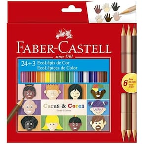 Características do produto:? 24 cores vibrantes + 3 tons de pele? Linha Caras & Cores – diversidade e inclusão? Madeira de reflorestamento (EcoLápis)? Traços macios e ótima cobertura? Mina resistente e fácil de apontar? Ideal para uso escolar e atividades criativas? Qualidade Faber-Castell Ean: 7891360656234