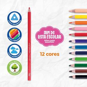 Com o Conjunto de lápis Mega da Tris, os momentos de pintura ficarão ainda mais fácil, com a sua ponta macia e seu desing redondo facilita na hora de colorir e pegar no lápis, suas cores vibrantes para deixar os desenhos ainda mais coloridos. Lápis de madeira, de traço super macio, excelente cobertura e corpo triangular. 12 cores!