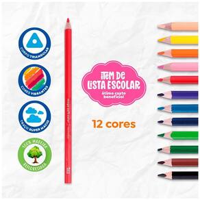Cores vibrantes Lápis de madeira, de traço super macio, excelente cobertura e corpo triangular. 12 cores Garanta já o seu