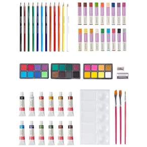 BLOCO DE CORES Caixa de madeira de mídia mista 73pc Art Set I Lápis de cor, Tintas acrílicas, Bolos de aquarela, Pastéis de óleo, Pincel e Paleta para crianças, adolescentes, iniciantes e artistas profissionais O conjunto de arte em mídia mista 73pc da Color Block é um ótimo kit inicial para qualquer pessoa interessada em experimentar e se divertir com todos os diferentes meios de arte. O conjunto vem com lápis de cor, tinta acrílica, bolos de aquarela, pastéis de óleo e todas as ferramentas artísticas essenciais para você começar a criar a partir do momento em que abre a caixa. O CONJUNTO DE ARTE INCLUI O kit de suprimentos de arte que atende a todos os níveis de artistas inclui cartão de cor 1pc, lápis de cor 12pc, tubos de tinta acrílica 12pc 12ml, bolos de aquarela 24pc, bolos de aquarela 24pc, pastéis de óleo 18pc, pincéis sintéticos dourados 3pc, paleta plástica de 6 poços 1pc apagador de vinil, afiador de metal com 1 orifício e 1pc, tudo bem organizado em um estojo de arte de madeira de luxo com tampas de metal e alça de pulseira de couro durável Marca: Não Informado