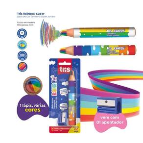 Lápis de Cor Tris 1cm Jumbo Rainbow Colors + Apontador Liberte sua imaginação com este lápis de cor jumbo . Com corpo ergonômico e mina super grossa de 10mm, ele é resistente a quebras. Acompanha apontador e oferece uma experiência de desenho suave e duradoura. - Contém: - 01 Lápis de Cor Jumbo Rainbow Colors 1cm - 01 Apontador Jumbo - Marca: Tris - Modelo: Rainbow - Referência: 911209 - Linha: Rainbow Colors - Corpo redondo - Mina Multicolorida - INMETRO - Segurança Compulsório - Registro: 006990/2022 Marca: Não Informado