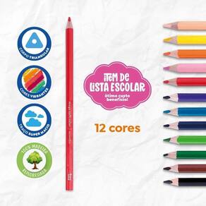 Mina: Super macia e exclusiva Cores: Vivas e com excelente cobertura em papéis claros e escuros Material: Madeira 100% reflorestada Formato: Corpo triangular para maior conforto Caixa com: 12 lápis
