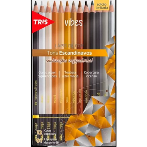 Lápis de cor Tris Vibes 12 cores Tons Escandinavos TRIS