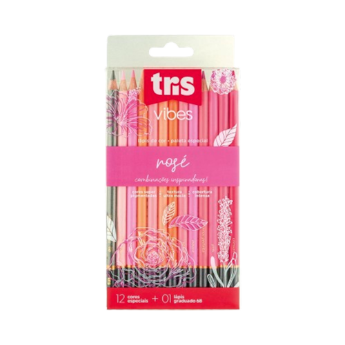 Lápis de cor Tris Vibes Rosé paleta especial 12 cores + lápis grafite 6B