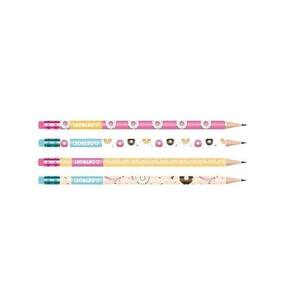 o lápis grafite hb donuts possui grafite com mina de 2,2mm, virola e borracha colorida, 4 estampas temáticas,