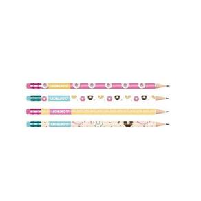 o lápis grafite hb donuts possui grafite com mina de 2,2mm, virola e borracha colorida, 4 estampas temáticas, formato redondo. Ponta resistente; possui borracha acoplada; tamanho aproximado: 0,7cm x 18,5 cm; composição: resinas e pigmentos. Atóxico. Indicada para crianças maiores de 4 anos. .
