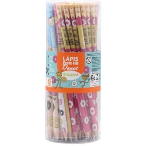 Lápis Grafite Hb Preto Donuts Com Borracha Léo&Léo Com 216 Un Contém: 216 unidades Lápis Grafite Hb Preto Donuts com Borracha Léo&Léo O Lápis Grafite HB Donuts possui grafite com mina de 2,2mm, virola e borracha colorida, 4 estampas temáticas, Formato redondo. Ponta resistente; Possui borracha acoplada; Tamanho aproximado: 0,7cm x 18,5 cm; COMPOSIÇÃO: Resinas e pigmentos. Atóxico. Indicada para crianças maiores de 4 anos. . Ean: 7793138378945