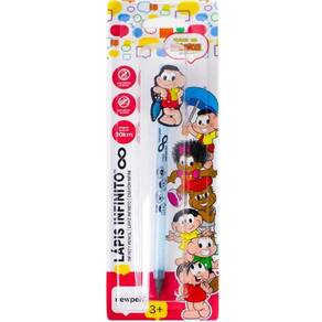 O lápis infinito da newpen turma da mônica equivale a 100 lápis comuns e possui uma tecnologia que consegue comprimir 100 grafites em nano partículas de grafeno, que é um material mais resistente que o grafite natural.