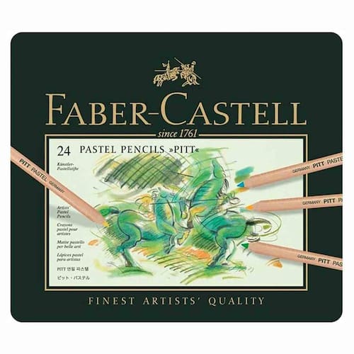 Assim como o pastel comum, o Lápis pastel Pitt com suas minas em pastel seco, são usados por artistas não apenas como o complemento perfeito para o giz pastel em elaborações de detalhes finos mas também tem excelente desempenho quando usados sozinhos. Muitos artistas que gostam da versatilidade do pastel, mas não das mãos sujas e do pó colorido que fica ao usá-los, têm usado estes lápis especiais. O Lápis Pastel Pitt têm uma mina compacta e econômica (Ø 4,3 mm). Sua mina contém um alto nível de pigmentação, inigualável resistência à luz, tornando o lápis ideal tanto para desenhar linhas, quanto para fazer sombreamento e também para criar misturas em transições de cores delicadas. Também é possível esfumar com o dedo, algodão, tecido ou esfuminho.Apesar de ser envolvido em madeira, o lápis pastel Pitt ainda deve ser apontado somente com uma lâmina afiada, encontrada em nossa faca artística. É indicado o uso de fixador, após o término do trabalho.