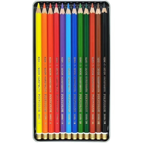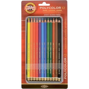 Estojo metálico lápis de cor artístico Polycolor Koh-I-Noor, contendo 12 cores. Qualidade superior, próprio para uso artístico e com resistência a luz e água. Alta concentração de pigmentos e excelente cobertura para um trabalho de qualidade.