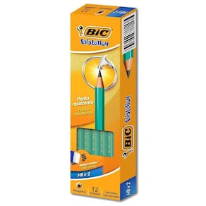 Lápis Preto Nº 02 S/Borracha Bic Evolution Kit C/4 Hexagonal Lápis Preto Nº 02 HB Corpo Verde Sem Borracha Kit C/12 Un Hexagonal Sextavado BIC Evolution, Corpo Verde, Apaga Fácil, Ponta Resistente, 902545 Os Lápis Pretos BIC Evolution são extremamente seguros para crianças pois não lascam e além disso trazem conforto e maciez a sua escrita Perfeito para a escrita diária, seja em casa, na escola, na faculdade ou no trabalho Mais durável com grafite ultra resistente que não quebra com facilidade São fabricados através de um processo único de produção, a partir de resina sintética, estes lápis especiais são fruto de anos de investigação até que este processo único de produção, quadri-extrusão, fosse aperfeiçoado, permitindo a produção numa única operação Um excelente processo de fabricação feito em duas fábricas de tecnologia de ponta, na França e no Brasil Diferenciadores Maior durabilidade grafite ultra resistente, não quebra com facilidade Seguro para crianças: não lasca Corpo Hexagonal Grafite HB2 Fácil de apontar Fácil de apagar Especificações Cor Corpo verde Indicações Pare escrever Volume Blister 4 unidades Informações constantes do selo, conforme Portaria Inmetro Nº 333/2012: Segurança, Compulsório, Registro 003843/2012, SGS0040, INMETRO Embalagem Lápis Preto Nº 02 HB Corpo Verde Sem Borracha Kit C/12 Un Hexagonal 2 Anos Marca: Não Informado