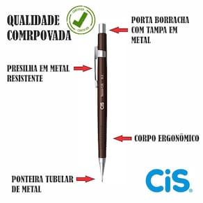 Possui corpo com cores metalizadas para trazer um toque moderno em seu dia a dia. As Lapiseiras Técnicas da CIS são o sinônimo de qualidade, resistência e durabilidade.