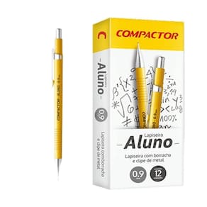 Lapiseira 0.9mm Aluno Compactor Amarelo Lapiseira 0.9mm Aluno COMPACTOR Amarelo - A Lapiseira 0.9mm Aluno COMPACTOR, disponível na FRAME PAPELARIA, é ideal para uso escolar e diário, oferecendo escrita firme e confortável. Possui corpo leve com design ergonômico e mecanismo de pressão que garante praticidade durante longos períodos de estudo e atividades em sala de aula.