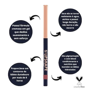Lápiseira labial lipshape terracota a lápiseira labial lipshape possui fórmula cremosa em gel que desliza suavemente e sem esforço, proporcionando um contorno de lábios duradouro por mais de 8 horas. Com sensorial aveludado e alta concentração de pigmentos sua fórmula é ultra macia ao aplicar demorando cerca de 40 para secar, tempo ideal para esfumar se for do seu gosto. Secando ela se torna resistente à agua, atritos e possui longa duração, não borra e não escorre. Use para delinear ou para preencher todo o lábio. Tecnologia, facilidade e exclusividade para complementar ainda mais a sua rotina com bt. Formulação vegana, altamente pigmentada e com blend condicionante e nutritivo que mantém os lábios hidratados mesmo com alto poder de fixação. Embalagem em formato de lapiseira que não precisa apontar para facilitar o uso. . Benefícios - acabamento aveludado. - resistente à agua. - seca sem transferir em 40 segundos. - fixação e conforto. - longa duração. - cor intensa de fácil aplicação. - mantém os lábios hidratados com alto poder de fixação. - cor duradoura por mais de 8 horas. - blend condicionante e nutritivo. . Modo de uso gire o corpo da lapiseira expondo a mina o suficiente que você deseja usar. Aplique contornando os lábios. Uso externo. . Composição methyl trimethicone/ metil trimeticona, polyethylene/ polietileno, trimethylsiloxysilicate/ trimetilsiloxissilicato, octyldodecanol/ octildodecanol, ozokerite/ ozoquerita, acrylates/dimethicone copolymer/ copolímero de acrilatos/dimeticona, disteardimonium hectorite/ hectorita diesteardimônio, propylene carbonate/ carbonato de propileno, pentaerythrityl tetra-di-t-butyl hydroxyhydrocinnamate/ tetra-di-t-butil hidróxi-hidrocinamato de pentaeritritila. Pode conter: iron oxides ci 77491 / óxido de ferro vermelho, iron oxides ci 77492 / óxido de ferro amarelo, iron oxides ci 77499 / óxido de ferro preto, mica ci 77019 , titanium dioxide ci 77891 / dioxido de titanio, red 7 lake ci 15850 / corante vermelho 15850, yellow 5 lake ci 19140 / amarelo de tartrazina. Ci 77491/ óxido de ferro vermelho, ci 77492 / óxido de ferro amarelo, ci 77499 / óxido de ferro preto, mica/mica, ci 77891 / dioxido de titanio, ci 15850 / corante vermelho 15850, ci 19140 / amarelo de tartrazina.