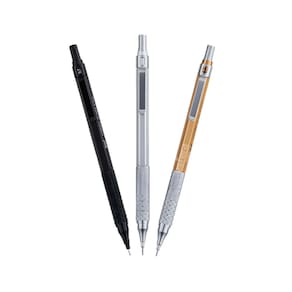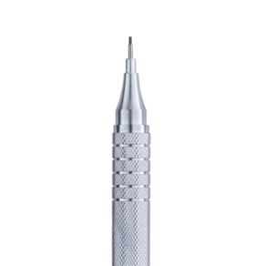 Com ponta fixa metálica, dispõe de mecanismo preciso para o avanço do grafite, que evita sua quebra e retrocesso.