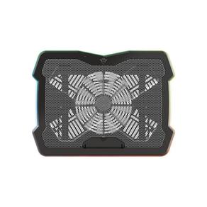 A malha de metal não está lá apenas para fornecer um ótimo fluxo de ar, mas também dá uma aparência bacana à sua configuração de jogo! E como jogar é sobre se destacar, a iluminação multicolorida ajustável oferece um visual único. Escolha entre 5 modos de cores diferentes (neon, arco-íris, respiração, sólido, oscilante, desligado) e crie um equipamento de jogo que seja realmente seu. Geral: Tamanho máx. laptop: 17 " Peso máx.: 10 kg Altura máx. de elevação: 20 cm Ventilador incluído; 200mm Altura do produto principal (em mm); 26 mm Largura do produto principal (em mm): 421 mm Profundidade do produto principal (em mm): 312 mm Peso total: 1000 g Conectividade: Porta USB extra: não Cabos incluídos: 80cm USB para cabo DC Recursos: Dobrável: não Antiderrapante: sim Iluminação: Luzes: sim Cores LED: Full RGB Características: Nível de ruído (faixa): 25 dBA - 30 dBA Velocidade de rotação: 450 RPM - 700 RPM Fluxo de ar: 13 CFM - 68 CFM Tipo de rolamento: luva Número de ventiladores: 1 Tamanho do ventilador: 200 mm Ajuste: Ajuste de altura (etapas); 5 etapas Altura ajustável: sim Entrada: Fonte de alimentação: USB Controle: Botão liga / desliga sim