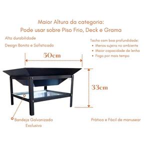 Lareira 50cm para jardim fogueira externa portatil a lenha A lazer e você apresenta a lareira para jardim portátil quadratta 50cm e 33cm altura mais alta da categoria . Fabricada em chapa grossa de aço carbono 1020. Pode ser Utilizado sobre piso cerâmico, deck de madeira e grama Base com pintura especial para altas temperaturas Bandeja galvanizada exclusiva de proteção para o piso e para pré assar alimento. Tacho com ótima profundidade na cor bruta do metal. Solda especial tig de alta resistência e acabamento - fio a fio Tacho seguro com cantos arredondados Prática, e com excelente durabilidade. Utiliza-se lenha, carvão, briquete ecológico e etc. Imagine um produto capaz de tornar as noites frias mágicas, de criar um clima sofisticado, alegre e aconchegante na presença da familiares e amigos. Use-a para encantar as crianças, bater um papo com os amigos, tocar um violão ao redor da fogueira, tomar um bom vinho, assar marshmallows e o que imaginar. Ideal para fazer uma fogueira controlada, sem sujeira para aquecer o ambiente e alegrar os corações. Observações: - lareira somente para ambientes externos como jardins, quintal ao ar livre, chácaras, pousadas, hotel fazenda, clubes, parques, etc. - quem mora em apartamento com sacada pode usar no espaço externo com carvão que não faz fumaça - devido ser fabricado em ferro, evitar o contato com água para maior durabilidade - não acompanha lenha. - cuidado e atenção total com crianças - manusear a lareira somente com luvas térmicas - a base aquece com o calor da fogueira - com o fogo a tonalidade de cor do tacho irá alterar O que acompanha: 01 tacho com chapa grossa de 2.0mm de espessura 01 base montável - pintura especial altas temperaturas 01 bandeja galvanizada exclusiva Marca: Não Informado Ean: 7894357550027