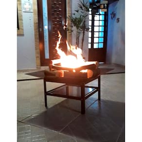 Lareira 80cm para jardim fogueira externa portatil a lenha A lazer e você apresenta a lareira para jardim portátil quadratta 80cm e 40cm altura mais alta da categoria . Fabricada em chapa grossa de aço carbono 1020. Pode ser Utilizado sobre piso cerâmico, deck de madeira e grama Base com pintura especial para altas temperaturas Bandeja galvanizada exclusiva de proteção para o piso e para pré assar alimento. Tacho com ótima profundidade na cor bruta do metal. Solda especial tig de alta resistência e acabamento - fio a fio Tacho seguro com cantos arredondados Prática, e com excelente durabilidade. Utiliza-se lenha, carvão, briquete ecológico e etc. Imagine um produto capaz de tornar as noites frias mágicas, de criar um clima sofisticado, alegre e aconchegante na presença da familiares e amigos. Use-a para encantar as crianças, bater um papo com os amigos, tocar um violão ao redor da fogueira, tomar um bom vinho, assar marshmallows e o que imaginar. Ideal para fazer uma fogueira controlada, sem sujeira para aquecer o ambiente e alegrar os corações. observações: - lareira somente para ambientes externos como jardins, quintal ao ar livre, chácaras, pousadas, hotel fazenda, clubes, parques, etc. - quem mora em apartamento com sacada pode usar no espaço externo com carvão que não faz fumaça - devido ser fabricado em ferro, evitar o contato com água para maior durabilidade - não acompanha lenha. - cuidado e atenção total com crianças - manusear a lareira somente com luvas térmicas - a base aquece com o calor da fogueira - com o fogo a tonalidade de cor do tacho irá alterar O que acompanha: 01 tacho com chapa grossa de 2.0mm de espessura 01 base montável - pintura especial altas temperaturas 01 bandeja galvanizada exclusiva Medidas da lareira montada: Largura: 80cm Comprimento: 80cm Altura total: 40cm Peso: 15 kg Cor base: preto fosco Tacho: na cor bruta do metal Marca: Não Informado Ean: 7894357580024