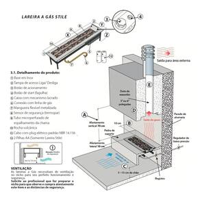 A lareira deve ser instalada em local adequado com ventilação e circulação de ar, além de ser necessário um duto de exaustão para a saída de gases e ventilação por baixo do equipamento.