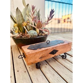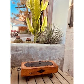 Lareira ecológica à álcoolO kit é composto por:1 queimador lareira ecológica:1 acendedor com puxador;1 puxador para tampa;1 mesinha de centro rustica com pés de ferro.A madeira pode variar de acordo com a disponibilidade.Dimensões:Mesa de centro 43x15cm 15cm de altura;Queimador lareira 35x10 saída da chama 25x2,5cm - capacidade de 500mlPé: 15cmInstruções de uso e segurançaOs nossos queimadores ecológicos utilizam etanol álcool de posto de combustível 0,5 litro de álcool queima aproximadamente 1 hora. Um melhor resultado e recomendado, é a utilização de álcool etílico 92, ou ainda o 80 utilizado para fondue e rechaud, estes são mais puros que o etanol, que dependendo do posto de combustível, podem conter resíduos de gasolina e óleo diesel. Não solta fumaça, não deixa cheiro de queima no ambiente super discreto, decorativo e funcional.Prático, pode ser levado em qualquer lugar, cabe no seu carro para você transportar pra onde você for.Atenção enquanto o fogo estiver aceso, não reabastecer de álcool, aguardar o fogo apagar por completo para o reabastecimento com álcoolA madeira da fabricação deste produto pode sofrer diversas variações de cor, tipo, peso, forma, pois cada peça é única, cada uma tem sua característica, sua história, sua peculiaridade. Você poderá ser privilegiado em receber uma peça de ipê, peroba rosa, roxinho, angelim, pau brasil, todas madeira de lei, raramente encontradas no mercado hoje em dia. Não trata se de produto industrializado e sim artesanal, com os caprichos da natureza, do tempo e do artesão.