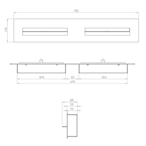 O tempo de queima desta lareira de embutir ecológica é de 2 a 3 horas. Sua capacidade é de 2 litros de álcool e a capacidade de aquecimento é de ambientes de até 50m.