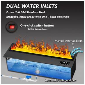 Lareira elétrica a vapor de água com efeito de chama atomizada 3D realista, gerado por sistema integrado de nebulização ultrassônica que produz vapor iluminado por LEDs para simulação visual precisa sem fumaça ou calor. Dispõe de controle manual do nível de água para garantir nebulização consistente e desempenho otimizado da chama, complementado por controle remoto para ajuste da intensidade da chama e do efeito de névoa. Projetada para instalação embutida em ambientes internos, opera em voltagem 110V-120V / 60 Hz com cabo de alimentação de 1,52 metros (5 pés) e padrão de tomada americano. Estrutura metálica com acabamento em pintura eletrostática, sem necessidade de ventilação externa e com função dimmer ajustável. Indicada para salas de estar e centros de entretenimento com foco em design moderno e operação decorativa.?