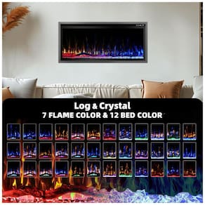 A lareira vem com certificação ETL e inclui toras de fogo falsas, madeira flutuante, pedras de cristal, controle remoto, suportes de montagem na parede, parafusos e outras ferragens. Além disso, a área de visualização do fogo foi melhorada com um design de moldura ultraestreita, proporcionando uma visão mais ampla do fogo que captura a atenção com sua estética elegante.