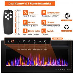 DECORAÇÃO DE CASA BEM FEITA E AGRADÁVEL Design fino com estrutura resistente e painel frontal de vidro temperado plano, a lareira elétrica de betelnut adiciona chamas bastante realistas e saída de calor incrível para qualquer ambiente. Um pouco mais acolhedor e interessante para o seu quarto, é a excelente escolha, quer seja para efeitos estéticos ou térmicos. RECURSOS DIVERTIDOS As múltiplas combinações de cores, velocidade da chama e controles de dimmer oferecem tantas opções para realmente definir o ambiente. Ele vem com pedras de cristal e carbono para atender às suas necessidades. Com as 12 cores estáticas ou o ciclo de cores, a chama e as rochas ficam lindas e lindas. QUENTE E CONVIDANTE O calor sai pelo meio da parte superior da frente, que concentra mais calor e o torna mais quente Configurações de temperatura e temporizador de 1H a 8H ajustável Exala calor suficiente e torna a sala tão aconchegante, ADEQUADA PARA CERCA DE 37 m2 DE ESPAÇO. FÁCIL DE USAR Tipo de instalação embutida e montada na parede com base em suas necessidades Fácil de operar pela tela de toque led e controle remoto Visor digital claro Com dispositivo de corte Baixo ruído com 45 db Economia de energia e certificado ETL A especificação indica que as dimensões da lareira elétrica são 30 polegadas de comprimento 76,2 centímetros 17 polegadas de largura 43,18 centímetros 4 polegadas de profundidade 10,16 centímetros A configuração de calor pode ser ajustada entre 750W e 1500W. O pacote inclui uma lareira elétrica, um registro de carbono, um pacote de pedras de cristal, um manual de instalação e acessórios de hardware