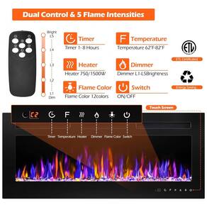 Especificações do produto: Marca: BETELNUT Fonte de Energia: Elétrica com Fio Dimensões do Produto: 10,16 cm P x 91,44 cm L x 43,18 cm A Material: Vidro Temperado Acabamento: Vidro Temperado Tipo de Instalação: Montagem na Parede Saída de Calor: 5100 BTU Recurso Especial: Painel de Controle por Toque e Controle Remoto, Chama com 12 Cores de LED Ajustáveis, Dispositivo de Corte Seguro, Opções de Troncos de Carbono e Pedras de Cristal, Temperatura e Timer Ajustáveis Estilo: Moderno Cor: 12 Cores de Chama Tipo de Ambiente: Sala de Estar Tipo de Ventilação: Sem Ventilação Cobertura de Aquecimento: 37 m² Componentes Inclusos: Troncos, Controle Remoto Usos Específicos: Interno Peso do Item: 15,5 kg Orientação: Vertical Formato: Retangular Consumo de Energia: 1500 Watts Profundidade da Câmara: 10,16 cm Tipo de Queimador: Elétrico UPC: 750743718082 Tamanho Máximo Compatível: 91,44 cm Fabricante: BETELNUT Voltagem:110 volts