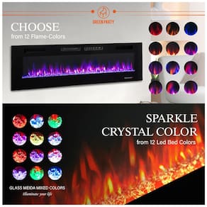 Efeitos de chama realistas: A lareira oferece um efeito de chama brilhante e realista com luzes LED internas. São 12 opções de cores de chama e 12 cores para o efeito de cama de carbono, permitindo personalização completa. Além disso, você pode ajustar a intensidade da chama e a velocidade do efeito de cama de carbono.