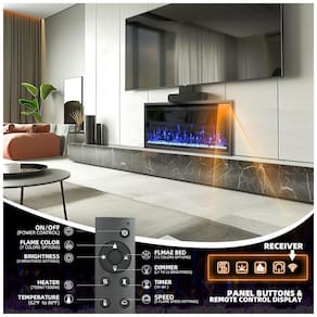 Área de Visualização do Fogo Melhorada: A lareira apresenta um design de moldura ultraestreita, oferecendo uma visão ampla e atraente do fogo. Ideal para montagem na parede ou instalação embutida, ela adiciona um toque de estilo a qualquer ambiente.
