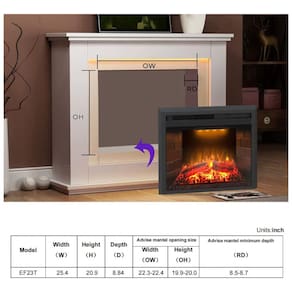 Especificações do produto: Marca: Valuxhome Fonte de Energia: Elétrica com Fio Dimensões do Produto: 22,5 cm P x 64,4 cm L x 53,1 cm A Material: Resina Tipo de Acabamento: Pintura Eletrostática Tipo de Instalação: Embutida Saída de Calor: 5120 Unidades Térmicas Britânicas (BTU) Recurso Especial: Timer Estilo: Moderno, Embutido Cor: Preto Tipo de Ambiente: Sala de Estar Tipo de Ventilação: Sem Ventilação Cobertura de Aquecimento: 0,46 m² Componentes Inclusos: Toras, Controle Remoto Usos Específicos: Interno Peso do Item: 13,6 kg Nome do Modelo: EF23T Formato: Retangular Profundidade da Câmara: 19,8 cm Tipo de Queimador: Quartzo Tamanho Máximo Compatível: 22,5 cm Fabricante: Valuxhome Voltagem:110 volts