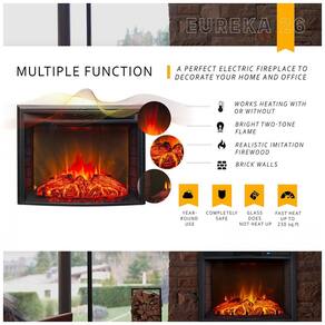 ACONCHEGUE SE PERTO DE UMA INCÊNDIO REAL Assista com admiração enquanto as chamas crepitantes e realistas de nossa lareira LED hipnotizam você. É um recurso interno simples e fácil de usar que aquece até 37 m2. AJUSTE A SEU GOSTO A nossa lareira elétrica vem com um controle remoto para ajustar suas configurações. Use o para escolher entre diferentes modos de aquecimento, volume de som e níveis de brilho. INSTALE COM FACILIDADE Configure esta lareira de vidro frontal curvada Eureka 26 de 2 maneiras instalação embutida ou cornija. O produto possui uma moldura especial removível caso você prefira instalá lo na cornija. FEITO PARA SEGURANÇA Sua segurança é nossa prioridade, e é por isso que este aquecedor elétrico de lareira vem com proteção contra superaquecimento. Ele também possui um timer que você pode definir entre 30 minutos e 5 horas Dimensões do produto 16, de profundidade x 69, de largura x 53, de altura centímetros