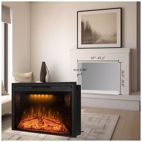 Dimensão total 127 centímetros de largura X 22,4 centímetros de profundidade X 69,4 centímetros de altura. Dimensão da inserção 118,4 centímetros de largura X 19,56 centímetros de profundidade X 66,1 centímetros de altura. Esta lareira é fácil de instalar, o painel de vidro temperado, a aparência elegante e o estilo simples combinam perfeitamente com armários de TV, paredes de lareira, estantes, entre outros. CHAMA REALISTA A lareira elétrica embutida com calor substitui as lareiras tradicionais pela tecnologia LED de economia de energia, sem fumaça e sem cinzas. Chamas realistas e efeitos de lenha queimando, exalando calor e luz. Modos de suspensão com todas as luzes apagadas durante o aquecimento. MODOS DE OPERAÇÃO MÚLTIPLOS A lareira elétrica é equipada com um controle remoto sem fio e tela sensível ao toque, que é simples e conveniente. 3 cores de luz superiores, 5 brilhos de chama, temporizador de 1 9 H e alto falantes embutidos que simulam o som de rachaduras na queima de lenha, proporcionando uma experiência real de lareira. E CONFORTÁVEL Design de parede de tijolos interiores de dois lados. Aquecedor de lareira tem configurações de calor duplas, 1500W mais alto, 750W mais baixo. Ao superaquecer, o sistema de proteção desligará o aquecedor