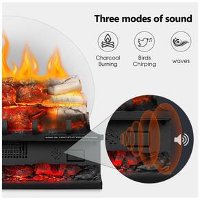 pode ajustar a configuração para atender às suas preferências. A inserção da lareira elétrica inclui três modos de som: queima de carvão, canto de pássaros e som de ondas, criando um ambiente imersivo.