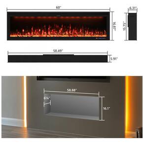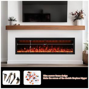 Desfrute do calor e da beleza da Lareira Elétrica Valuxhome de 60 polegadas. Com 13 cores de chamas, 13 cores de brasas e 3 cores de luz no topo, crie até 507 combinações de cores. Seu design ultra estreito oferece maior visão da chama em uma tela ampliada, garantindo um visual impressionante em sua casa. Com dois modos de aquecimento, atinge facilmente até 37m². Controle a chama, a cor da luz e a função de aquecimento separadamente. Além disso, possui proteção contra superaquecimento e timer de 19 horas para sua segurança. Acesse o controle por aplicativo, tela sensível ao toque ou controle remoto para uma experiência moderna e prática.